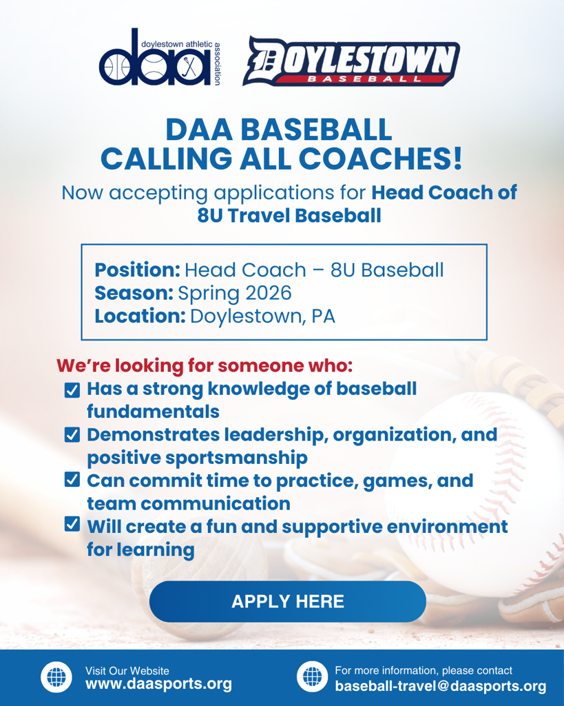Visit the DAA Baseball Program tab for more information @ www.daasports.org.